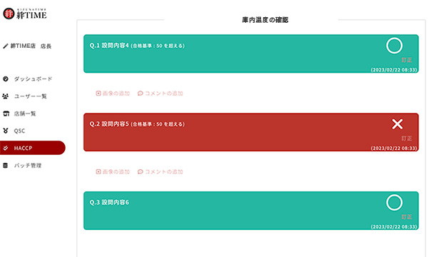 絆TIMEではHACCP対応のチェック機能や温度入力をスマートデバイスで実施することができます。