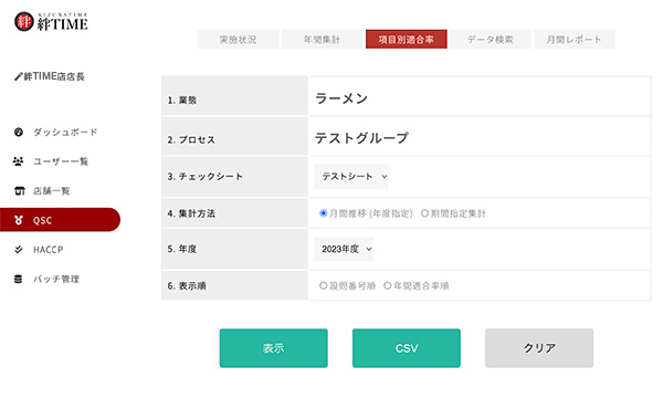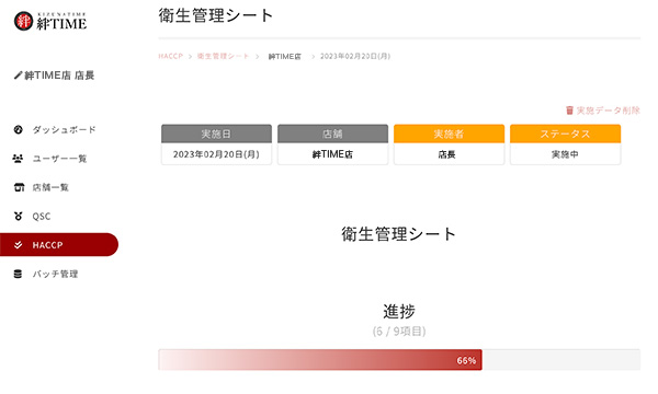 また、データの保存やCSVでの出力にも対応し管理者は各店舗の実施状況をリアルタイムで確認が可能です。